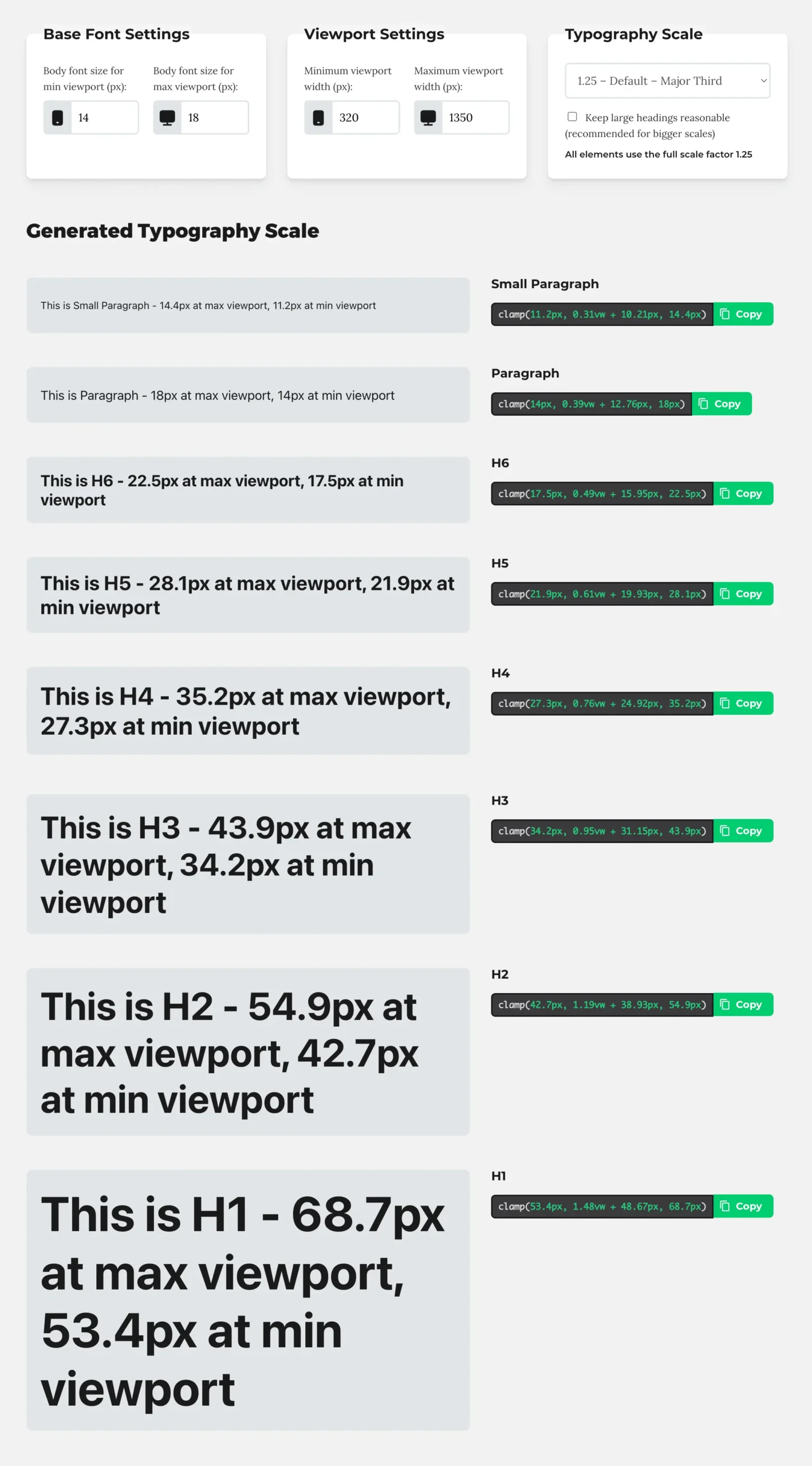 The Typography Scale Generator is where clamp really starts to shine.